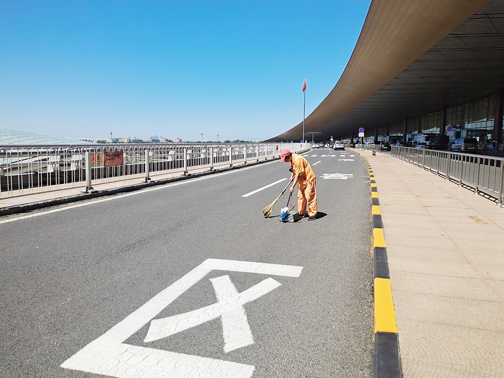 在首都機場的聯(lián)絡(luò)線上,瀝青路面被烈日烤得發(fā)燙,往來車輛卷起的熱浪更讓人喘不過氣來。環(huán)衛(wèi)工人夏六貴手持清掃工具,正沿著路邊快速清掃垃圾。作為首都機場公共區(qū)環(huán)衛(wèi)隊伍的一員,他不僅要及時清掃路面雜物,還要保證路段整體潔凈,哪怕高溫把空氣烤得發(fā)黏,他每天的清掃也從不打折扣。