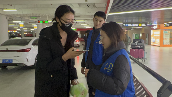 網約車不熟悉停車樓內路徑是造成通道擁堵、秩序混亂的主要原因。為給乘客提供良好的乘車環(huán)境,公共區(qū)管理部團員青年們積極作為,在2號停車樓內開展車輛指引、疏導以及問詢等服務。他們將服務前移,在網約車專區(qū)入口處引導車輛進入相應停車點位,有效避免高峰期擁堵情況。在乘車區(qū)加強接駁換乘服務,持續(xù)做好適老服務和無障礙服務,幫助旅客搬運行李,讓旅客快速上車、車輛快速駛離?!澳軌驗槁每蛶韺崒嵲谠诘膸椭?,一切辛苦都是值得的?!笨粗约簠f調下有序出入場的一輛輛網約車,青年們臉上洋溢著幸福的笑容。