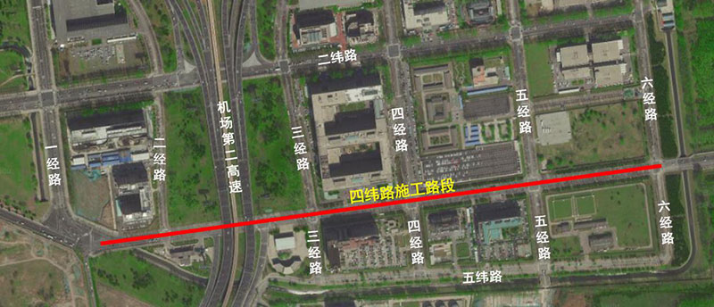首都機(jī)場(chǎng)四緯路位于3號(hào)航站樓南側(cè)工作區(qū),呈東西走向,施工范圍為一經(jīng)路至六經(jīng)路,路段全長(zhǎng)1091米。屆時(shí)將采取交通管理措施如下: