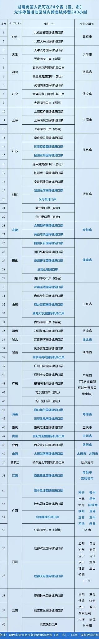 符合上述條件的外國(guó)人,可向中國(guó)北京、上海等地的60個(gè)口岸的邊檢機(jī)關(guān)提出申請(qǐng),邊檢機(jī)關(guān)將為其辦理臨時(shí)入境手續(xù),免簽停留時(shí)間自入境次日零時(shí)起算。符合與我國(guó)簽署互免簽證協(xié)定或我單方面免簽政策的,可從其規(guī)定。