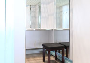 在行李提取大廳設(shè)置有六處更衣室,鏡子、桌臺(tái)、座椅、掛鉤,一應(yīng)俱全,方便旅客更換衣物。