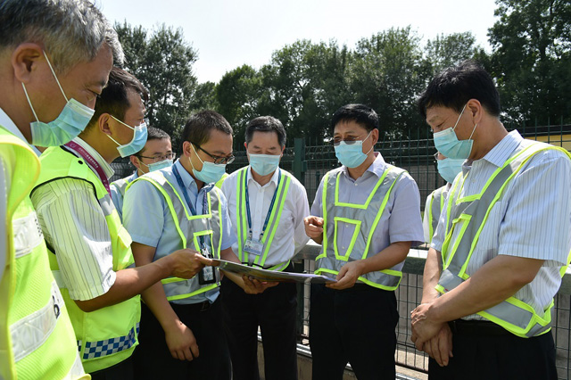 7月21日下午,集團(tuán)公司黨委書記宋勝利,集團(tuán)公司副總經(jīng)理郟建青,集團(tuán)公司黨委委員、股份公司黨委書記張國(guó)良,股份公司副總經(jīng)理王蔚玉一行來到首都機(jī)場(chǎng)運(yùn)行保障一線,先后赴首都機(jī)場(chǎng)防汛核心區(qū)域公共區(qū)3號(hào)泵站、飛行區(qū)1A泵站開展調(diào)研檢查。
