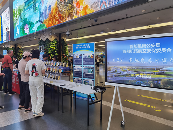 為積極踐行“平安中國(guó)”建設(shè)理念,扎實(shí)開展首都機(jī)場(chǎng)“平安民航”建設(shè),按照民航局、首都機(jī)場(chǎng)集團(tuán)相關(guān)工作部署,近日,首都機(jī)場(chǎng)在2號(hào)、3號(hào)航站樓組織開展了國(guó)際禁毒日宣傳活動(dòng)。本次活動(dòng)由首都機(jī)場(chǎng)公安局主辦、首都機(jī)場(chǎng)航空安保委員會(huì)協(xié)辦。在活動(dòng)中,公安青年民警與首都機(jī)場(chǎng)股份公司青年志愿者成立了聯(lián)合宣講隊(duì),通過(guò)知識(shí)講解、樣品展示、宣傳冊(cè)發(fā)放、互動(dòng)問(wèn)答等多種形式,面向在首都機(jī)場(chǎng)出行的旅客和現(xiàn)場(chǎng)員工,全方位、深層次地普及禁毒知識(shí),有效提高了廣大旅客和員工的識(shí)毒、防毒、拒毒能力,營(yíng)造了“健康人生、無(wú)毒空港”的良好氛圍。(房志華 李郝攝影報(bào)道)