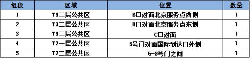 首都機場計劃在T2、T3重要區(qū)域及重要通道新增自助柜員機(ATM)(以下簡稱“ATM”)設(shè)備,資源點位如下: